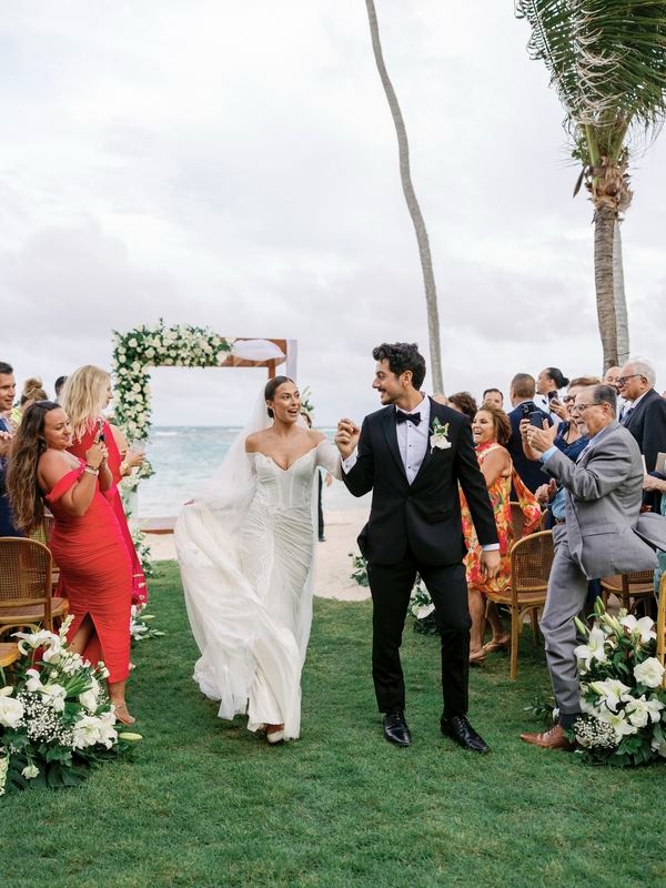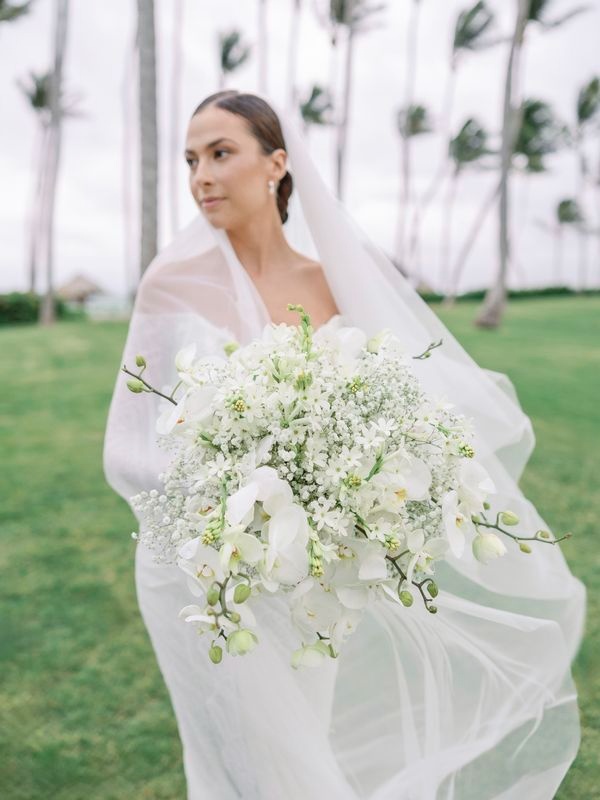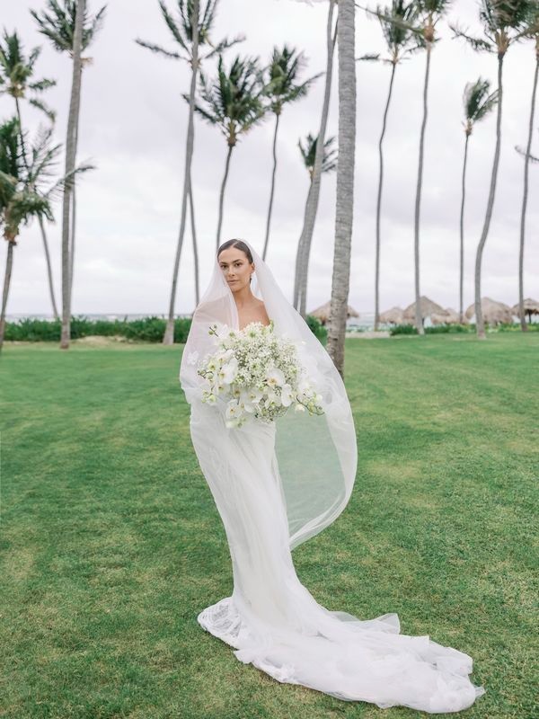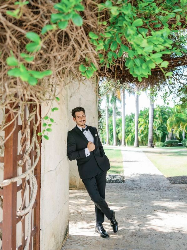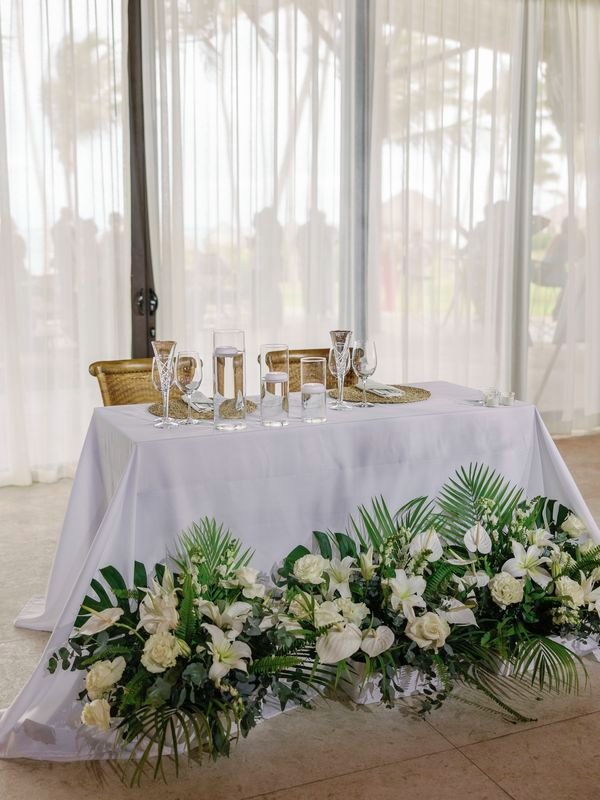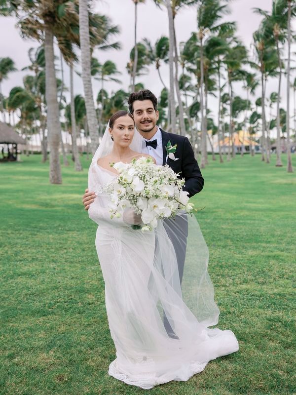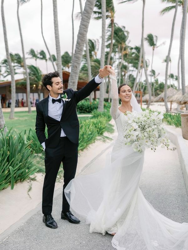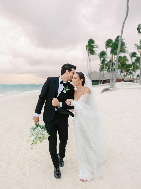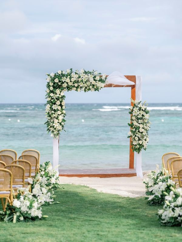 La pareja intercambió votos en una playa impecable rodeada de vibrante vegetación tropical y el azul cristalino del Mar Caribe. Además, una suave brisa movía las palmeras mientras Connie y Peter se situaban bajo un hermoso arco nupcial decorado con flores blancas. El contraste entre el verde intenso de las hojas, los pétalos blancos y el horizonte azul creó una escena digna de postal. Los invitados, de pie sobre la arena blanca y suave, presenciaron una ceremonia llena de emoción, sonrisas y ternura.