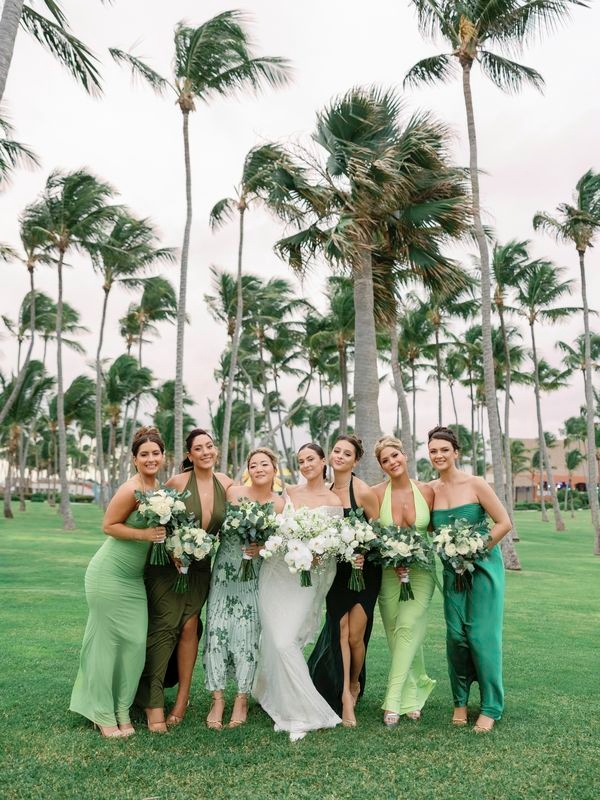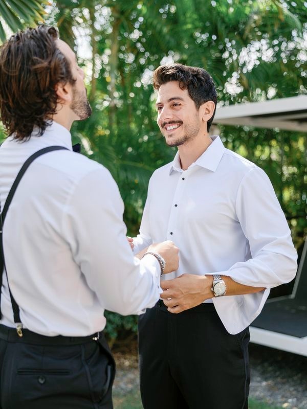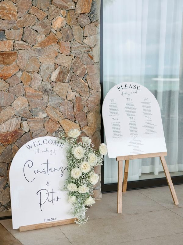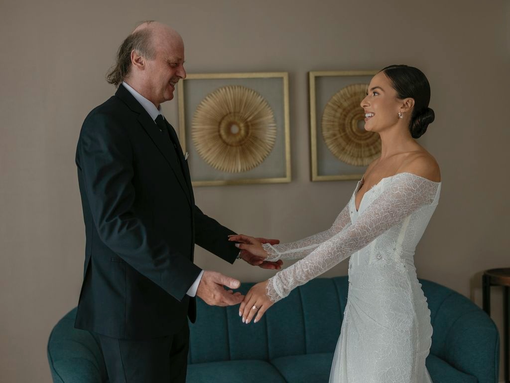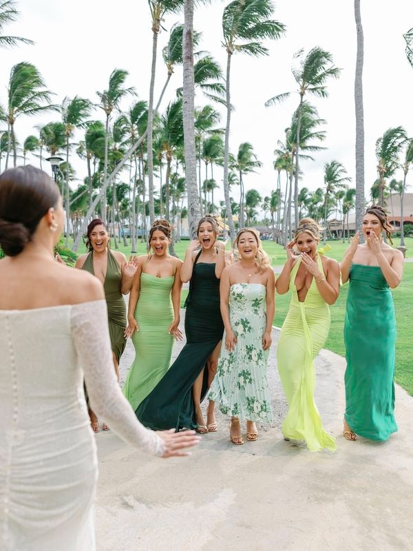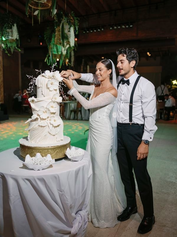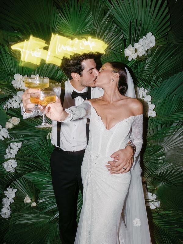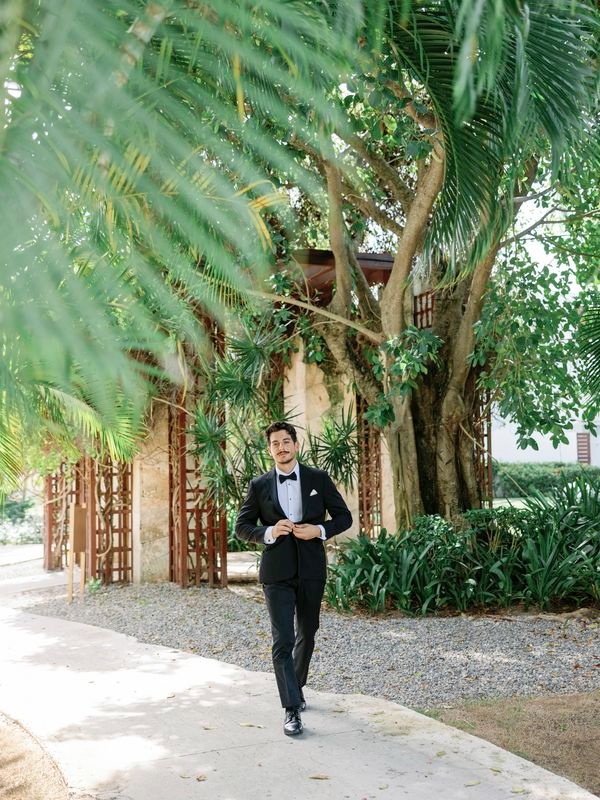 La pareja intercambió votos en una playa impecable rodeada de vibrante vegetación tropical y el azul cristalino del Mar Caribe. Además, una suave brisa movía las palmeras mientras Connie y Peter se situaban bajo un hermoso arco nupcial decorado con flores blancas. El contraste entre el verde intenso de las hojas, los pétalos blancos y el horizonte azul creó una escena digna de postal. Los invitados, de pie sobre la arena blanca y suave, presenciaron una ceremonia llena de emoción, sonrisas y ternura.