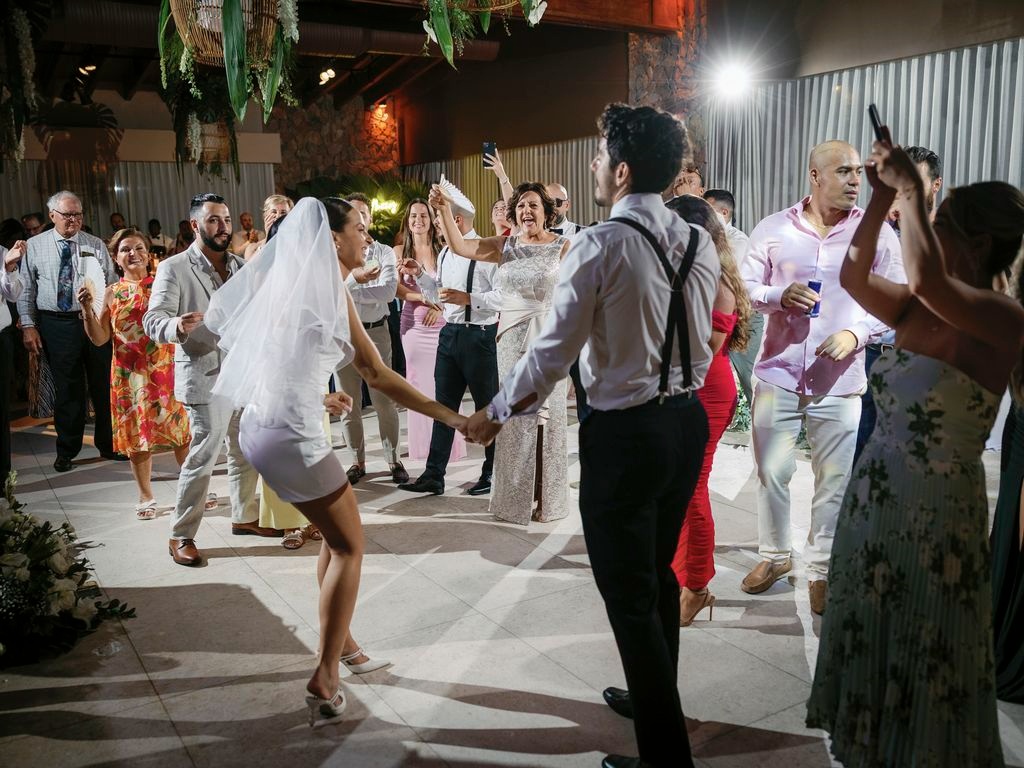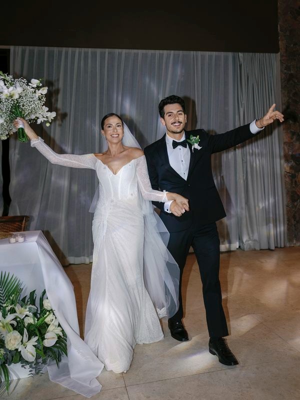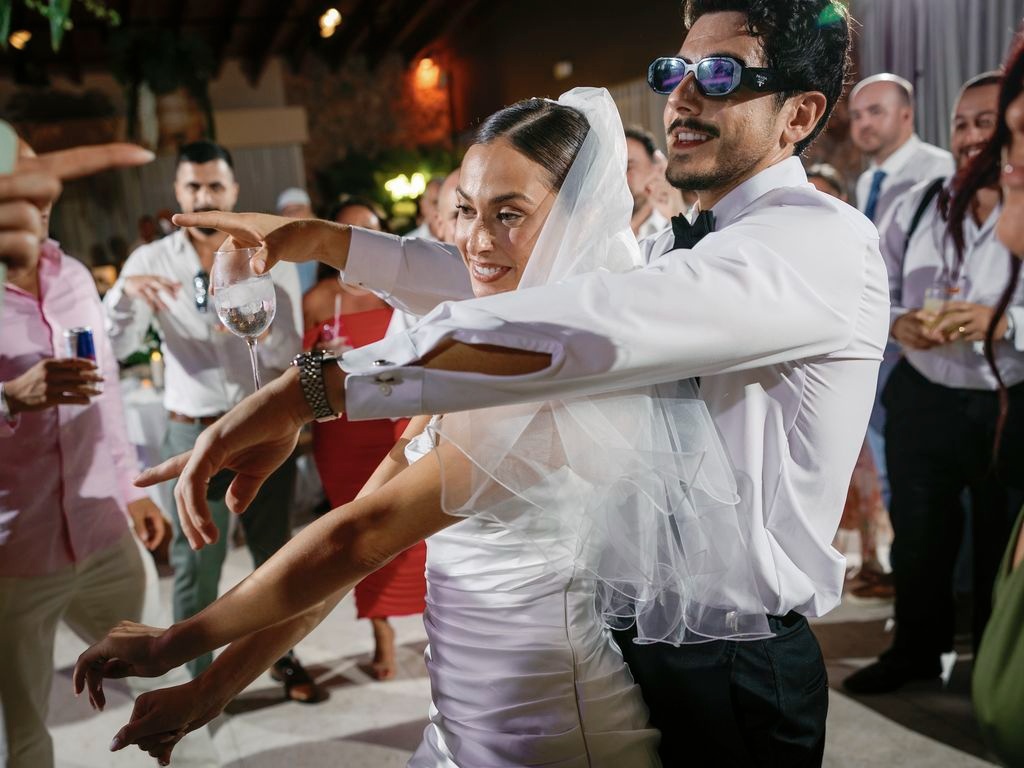 A lo largo de la noche, los invitados disfrutaron de deliciosa gastronomía, brindis emotivos y baile. Además, el primer baile de la pareja se sintió muy íntimo, rodeado de luces cálidas y rostros sonrientes. Los fotógrafos capturaron cada detalle — la arena suave, las sonrisas espontáneas y la magia del atardecer caribeño. Como resultado, la galería final de imágenes cuenta la historia completa de un día lleno de emoción y alegría.
