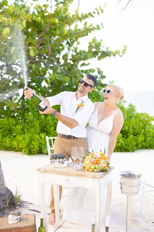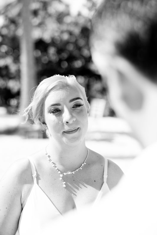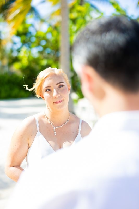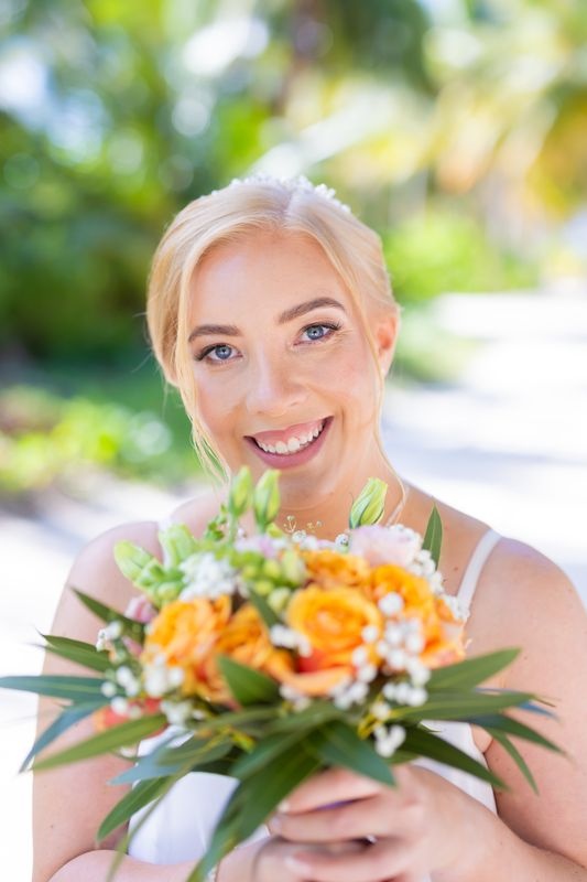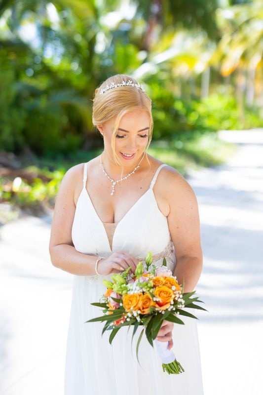 Un momento impresionante junto al mar turquesa del Caribe. Así es como se hacen los sueños realidad. Además, nuestro equipo de Caribbean Wedding and Events creó una celebración verdaderamente íntima. Estaba rodeada de altas palmeras, arena blanca y suave, y el sonido relajante de las olas.