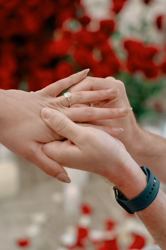 Al entrar en el corazón, las emociones surgieron de forma natural. Él expresó sus sentimientos, luego se arrodilló y presentó el anillo. Ella dijo “sí” sin dudar, y compartieron un beso lleno de felicidad, rodeados por la luz de las velas y el paisaje del mar.