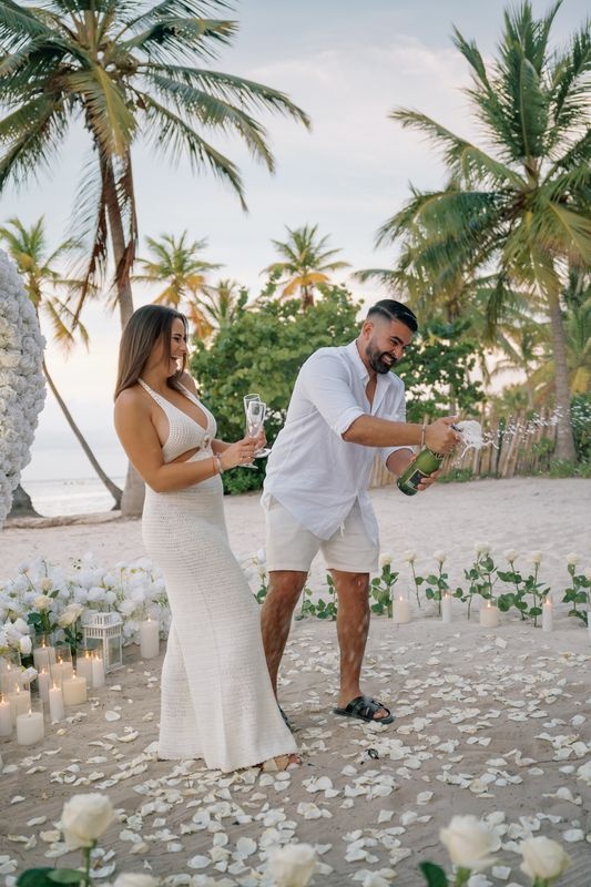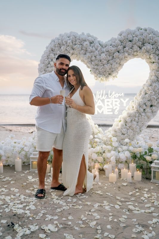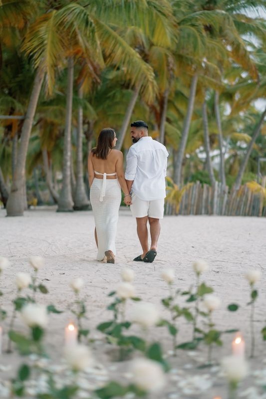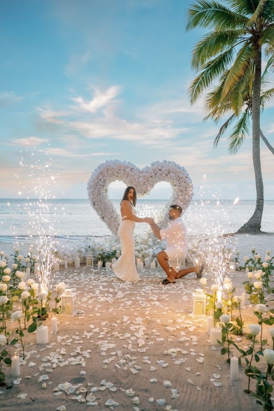 La propuesta terminó con un paseo romántico por la orilla, donde la pareja disfrutó de la belleza del atardecer caribeño. Fue un verdadero momento de cuento de hadas, creado con amor y cuidado para convertirse en un recuerdo que durará toda la vida.